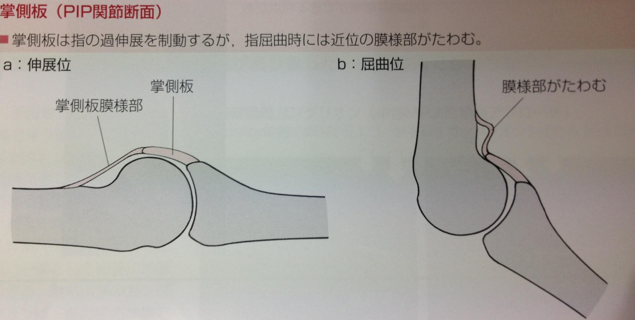 掌側板とは指の第2関節(PIP関節)の手のひら側についている繊維性の軟骨組織で、