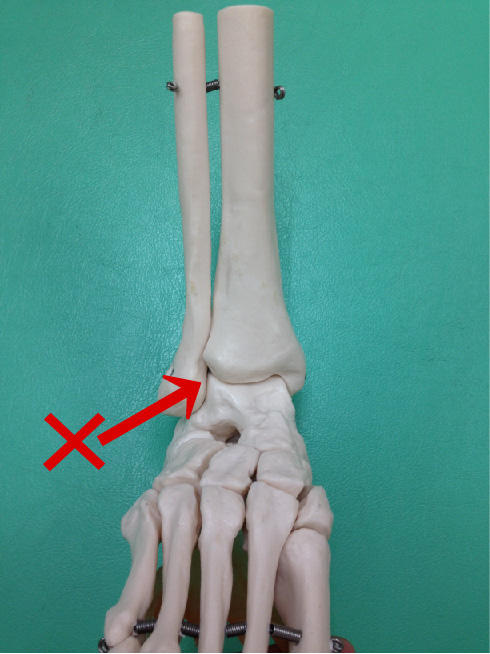 「足の外くるぶしの前側が、体重をかけると痛い」と御来院。