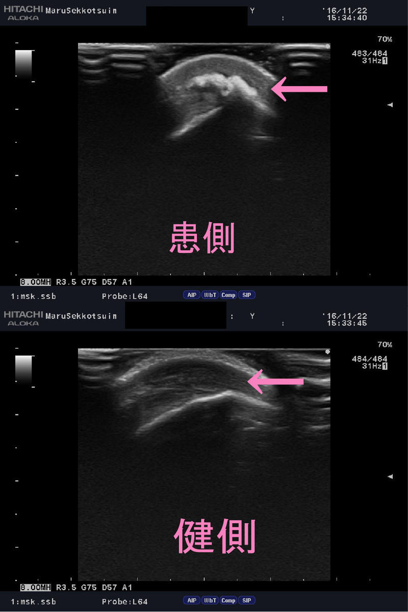 所見はないのでエコー(超音波画像診断装置)で確認。