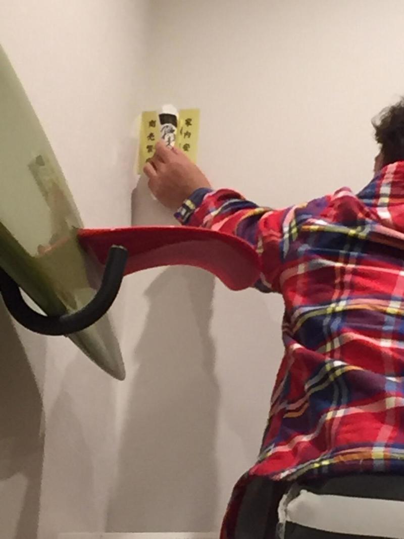 夜はほとんど酔っ払ってる丸橋には、脚立に乗って貼るので命がけです。。。