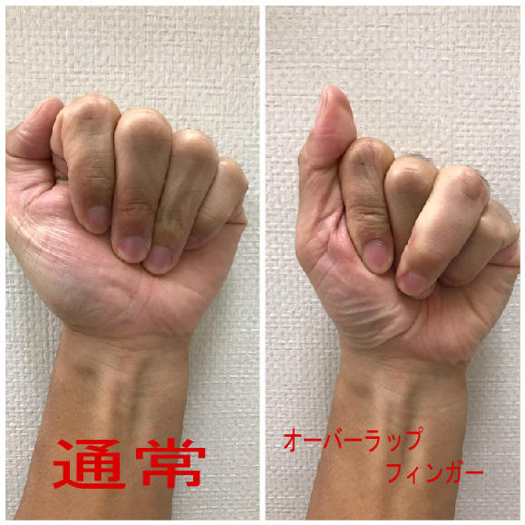 オーバーラップフィンガーといって、手をグーにした時に隣の指と重なってしまい、