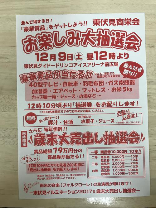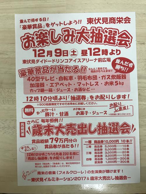 明日は東伏見ダイドードリンコアイスアリーナ前の広場で「歳末お楽しみ大抽選会」があるそうです。