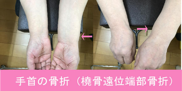 手首の骨折は折れ方により、コーレス骨折、スミス骨折、