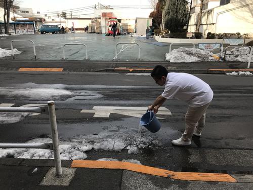 「まる接骨院」前の道路の凍り付いた雪もようやく、