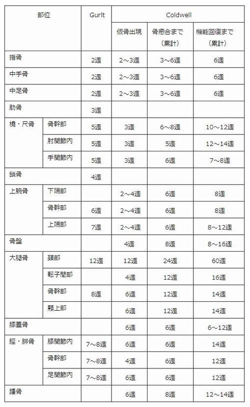 この表をあくまで参考ですが、「何日で骨がくっつく」、