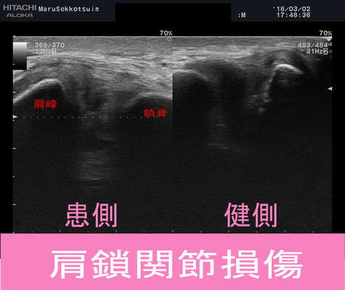 今回の患者さまはエコーで確認しても、鎖骨のズレもなく「1度強損傷」。