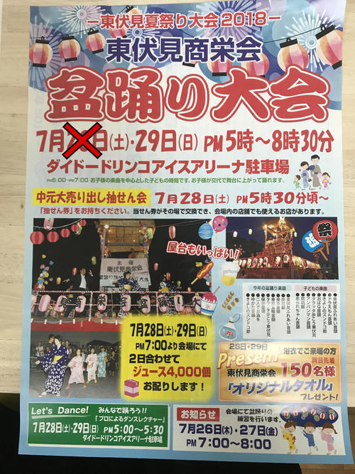 とりあえず「東伏見 盆踊り大会 2018」今日は中止だそうです。