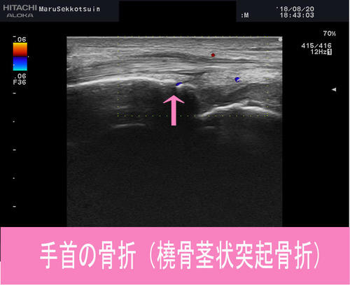 エコーで骨折部を確認し、的確に骨折部位を把握し、