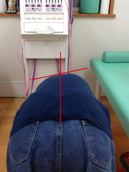 肩の高さの違い・肩甲骨の高さの左右差・腰のくびれの左右差を確認。