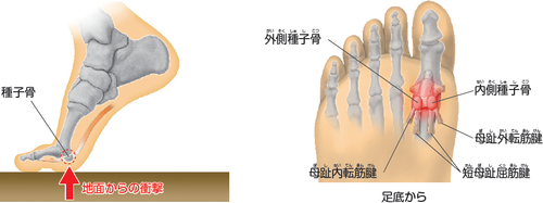足裏の母趾の付け根には種子骨という豆状の骨があります。