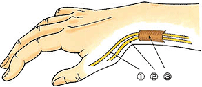 母指側の手首の位置で一緒に通っております。