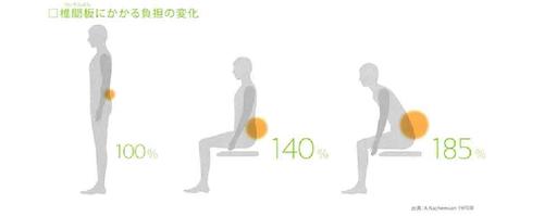 人間の構造的に立っているよりも、座っているほうが腰に約1.5倍の負荷が加わります。