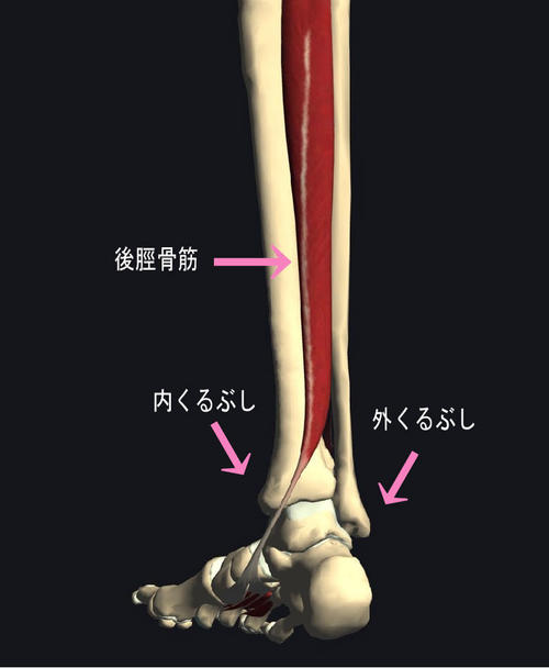「偏平足」になると、足のアーチが落ち、後脛骨筋が常に引っ張られ、