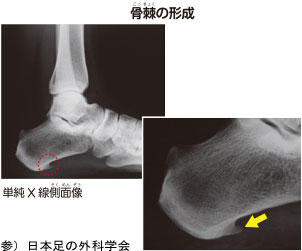 足底腱膜の緊張を長期間放置しておくと、かかとの骨(踵骨)の足底腱膜付着部に、