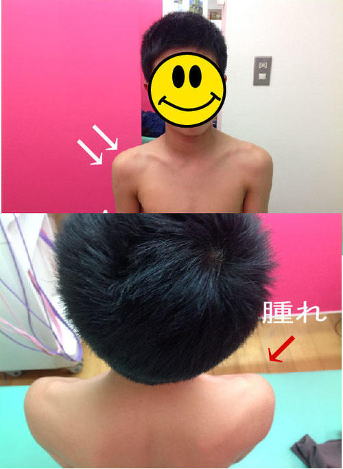 三角筋上に運動痛、圧痛を強く訴えておりました。