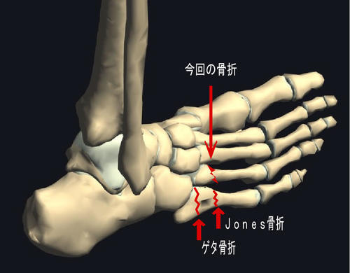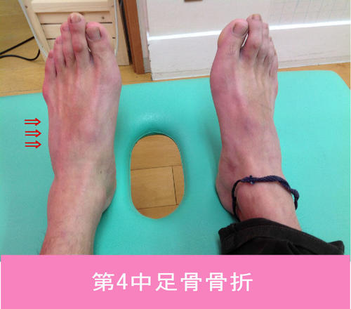 足首を内返しに捻挫した時に、第5中足骨骨折(下駄骨折)を、