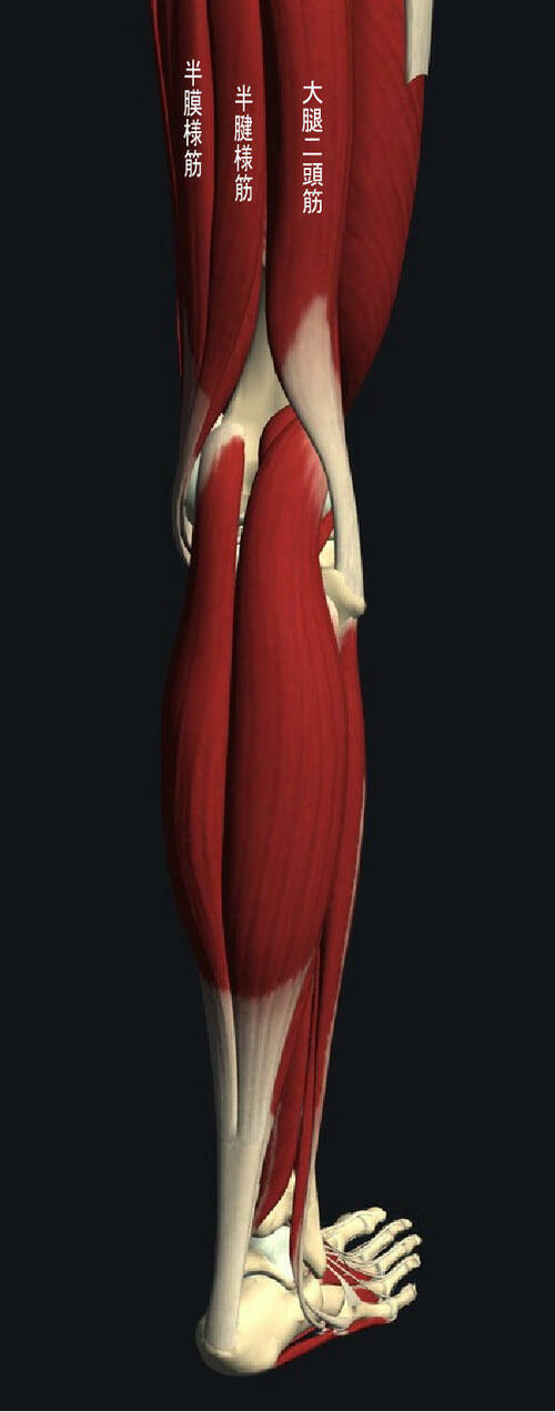 太ももの後ろは「ハムストリングス」と呼ばれ「大腿二頭筋、半膜様筋、半腱様筋」