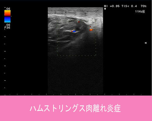 筋肉から腱に移行する部分で、炎症反応、低エコー像が診られます。