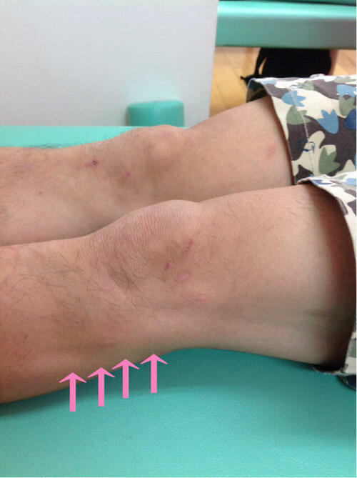 左右比べても、患側左足の腓骨頭がグラグラ、動かすと同時に疼痛も誘発。