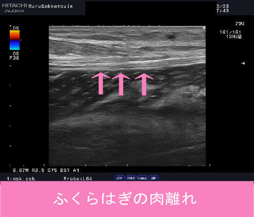 結果「腓腹筋内側頭部末梢付着部の肉ばなれ」と判明。