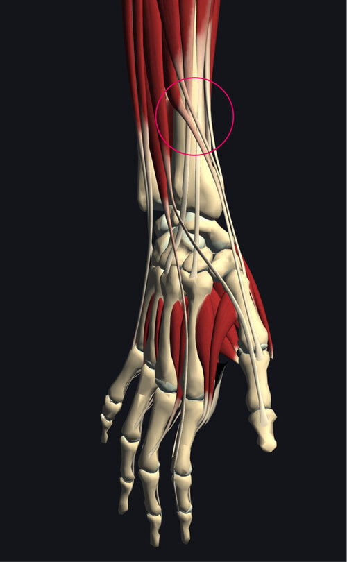 筋肉が交差する部分があり、手指や手首を酷使することにより、
