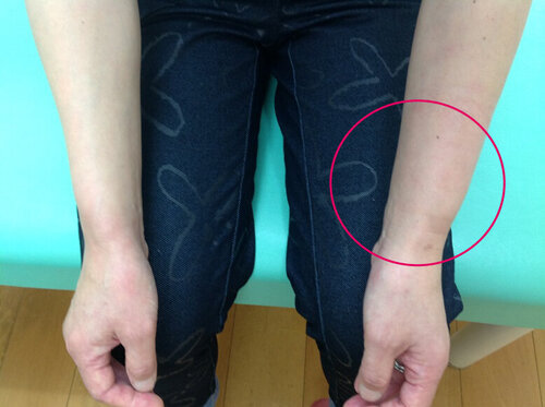 仕事で手を酷使しているうちに、手首背側の少し肘よりで、