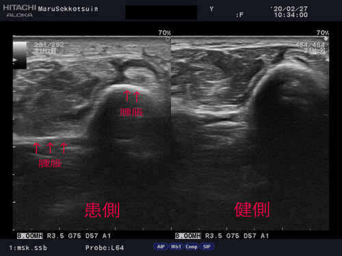 写真の通り、腫れが著名であり、手首を動かすと"ギシギシ"と、