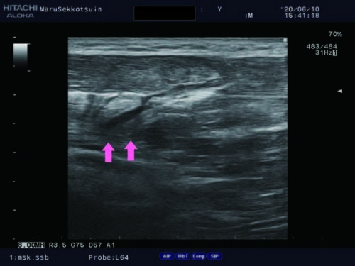 靴を履こうと踵に指を刺した時に「尺測手根屈筋の肉離れ」