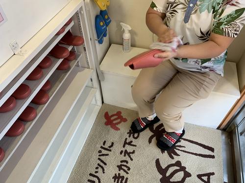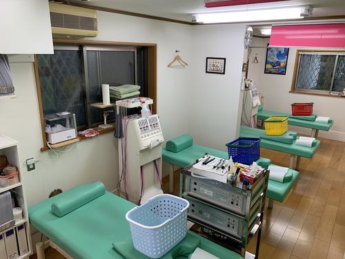 「まる接骨院」では使用毎に施術ベッド、スリッパのアルコール消毒、