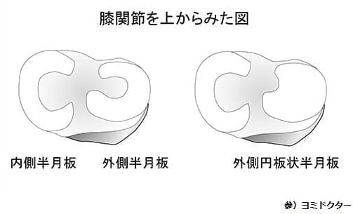通常半月板は三日月型になっていますが、円板状半月板とは円板型の状態を言います。
