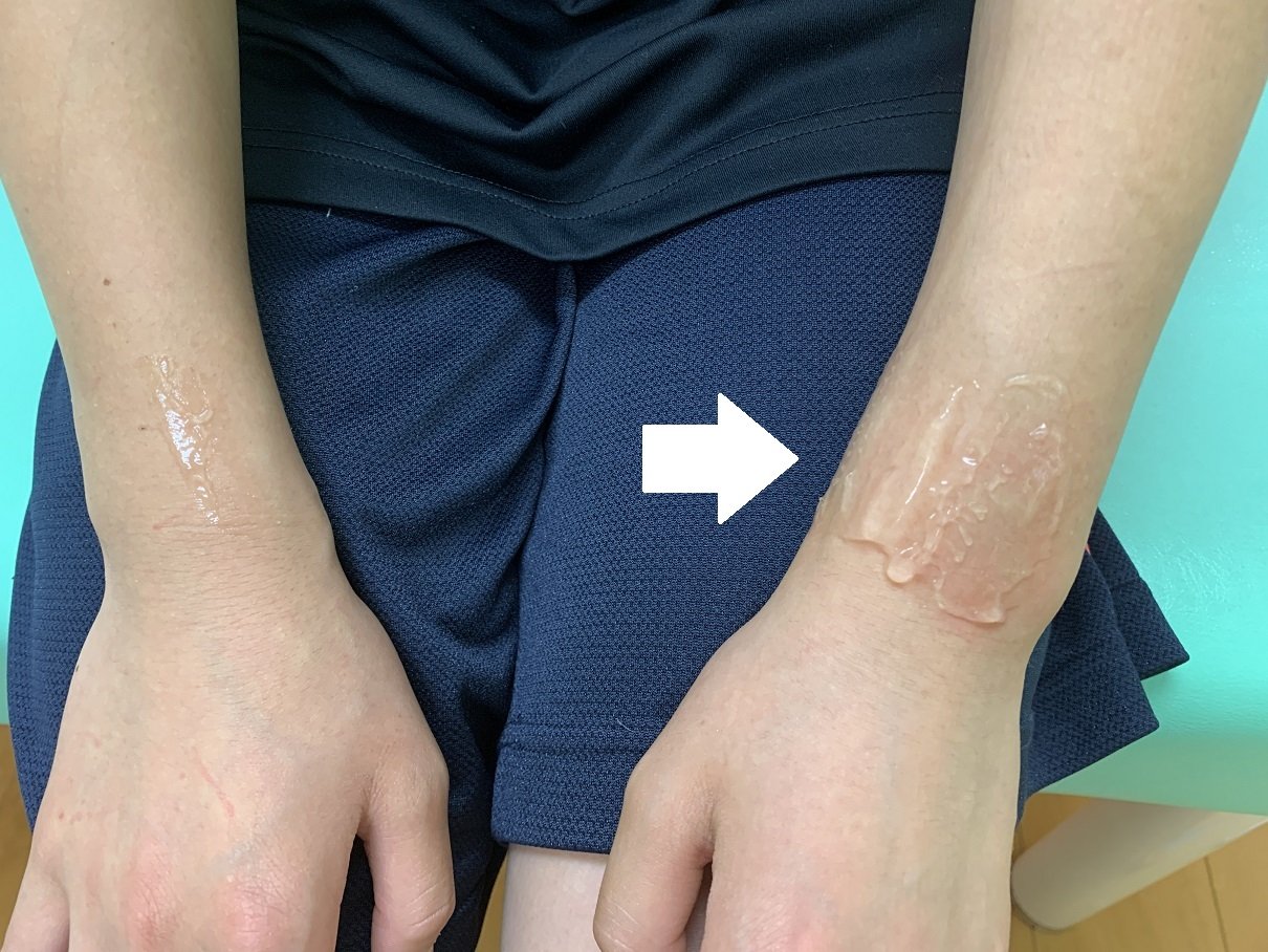 自転車で転倒した際、左手を突いた時に、手首を痛めたと御来院。