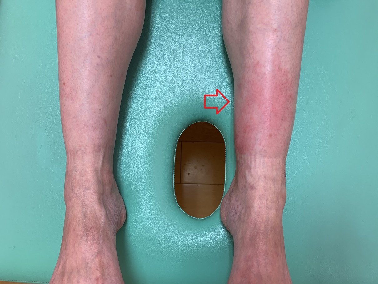 シンスプリントはふくらはぎの筋肉の柔軟性低下、疲労によって、筋付着部の脛骨という骨の表面、骨膜を牽引し、骨膜が炎症を起こし痛みを発生させるという症状です。