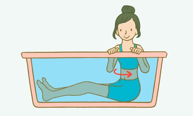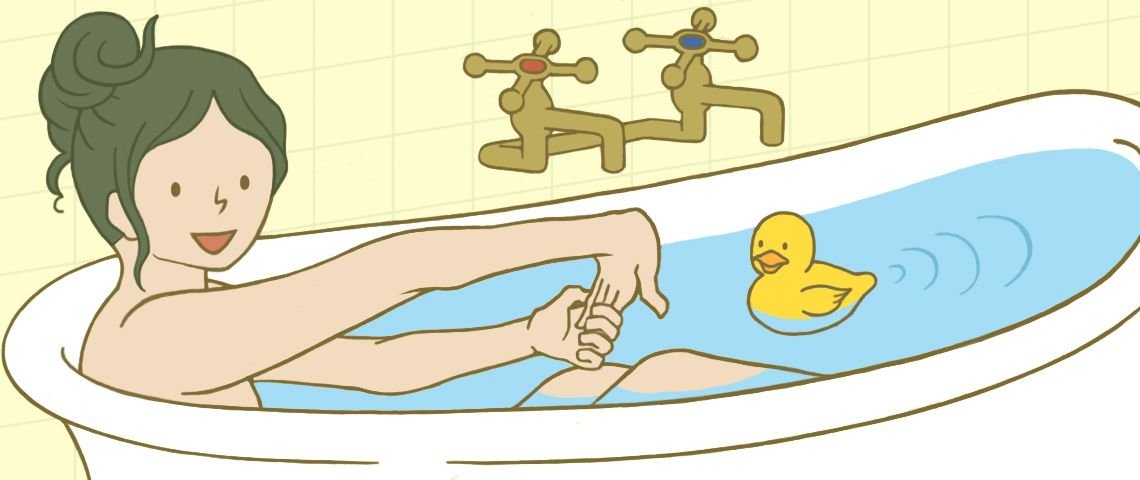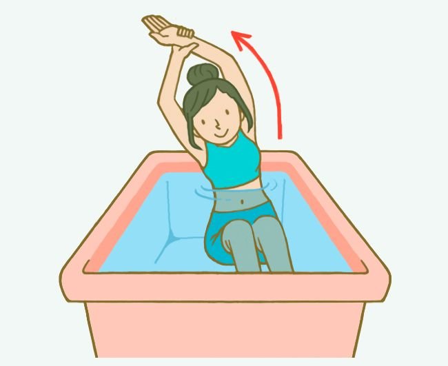 仕事後の湯舟が気持ちいいこの季節、湯舟の中でストレッチ。
