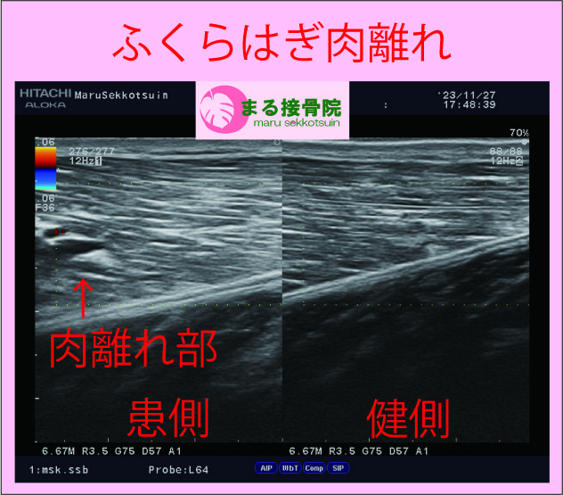 当院ではエコー検査を行い損傷部、深さ、広さを画像で確認し、的確に損傷部位を特定し治療を行って参ります。