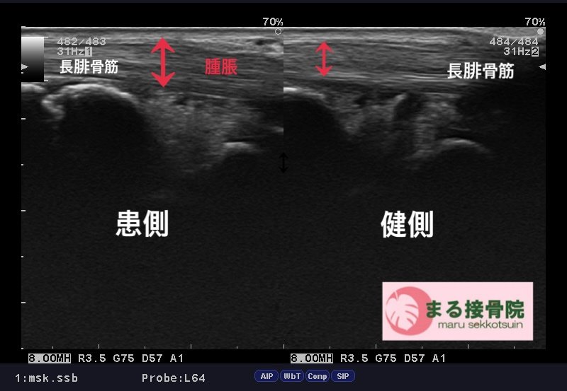 外くるぶしの後側には「腓骨筋」と呼ばれる筋肉があり、主に長腓骨筋・短腓骨筋で構成され、足首の関節を外反させたり、底屈させたりする作用があります。