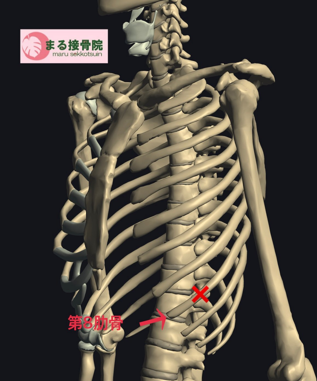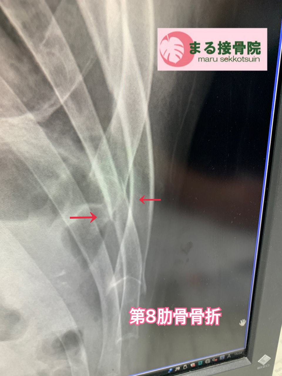 最初は左半身が痛く、左側胸部の骨折部、その他、第8肋骨肋椎関節部(背中の肋骨の付け根)、下部肋軟骨部を中心に強い痛みでした。