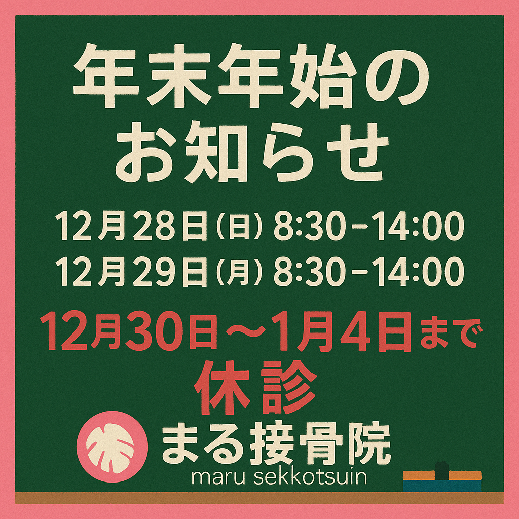 まる接骨院は、皆さまが安心して新年を迎えられるよう、年末までしっかりサポートいたします。